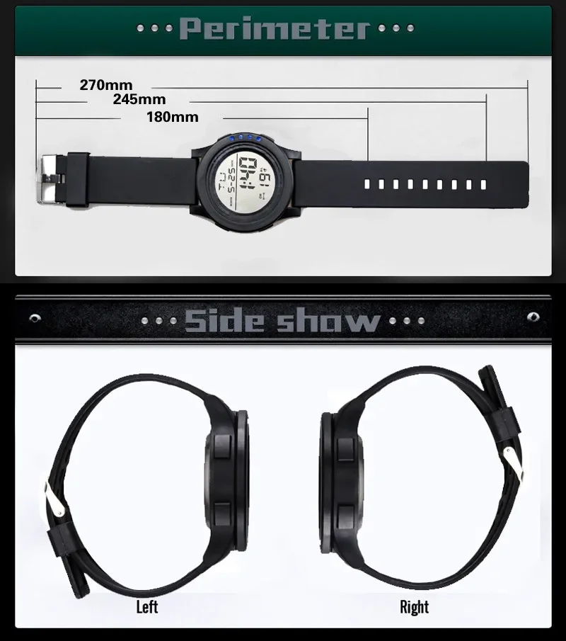 Water Resistant: 5 ATM, Also for shower, swimming and <50m diving.(Pls don't press any key under water)
